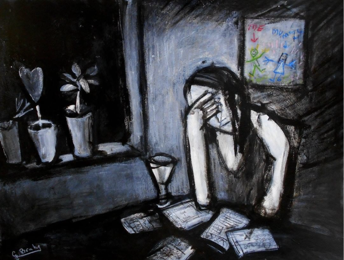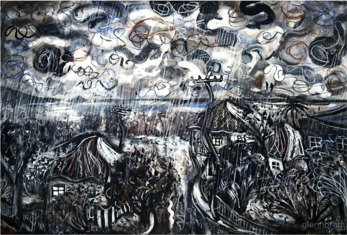 Brady’s situations in life were never ideal, but they were real. In his art he never tried to romanticize his subjects; the rows of houses, power poles, factory sheds, and train lines he grew up around. People both happy and sad living out their existences, they were the truth. “I didn't want to try to strive for ultra deep artsy meanings.” Brady says. He saw depicting the everyday as an honest task, why shouldn't people see the real just as much as they see the ideal? “My times in and out of depression and psych wards is who I am… I don't like it, but to deny it would be a lie.” If anything this perspective has given Brady the voice he has today. Throughout his life he’s been beaten, jalied, in psych wards, experienced shock treatment, performed hundreds of punk rock gigs, witnessed people dying, drugs, and alcohol. His art is a reflection of the environment he's lived in, “you can be abstract, surreal, etc but in your own surroundings no matter where on earth you are… the ‘reason’ to create art is just as important.” To understand oneself and your place in the world is humbling, “I was nothing… a grain of sand… a nobody.” And yet it was from this position Brady was able to see the simplicity of the world around him and express it in extraordinary works of art.